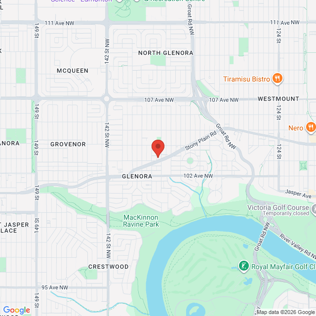 Our clinic is located in Glenora, just off Stony Plain Road in a quiet residential neighbourhood. There is plenty of free parking available for your visit. Clients are welcome to park along the street in front of the clinic, or use the gravel parking area located behind the building. The rear parking pad is open and easily accessible via the back alley. Please allow a few extra minutes before your first visit to get settled and find parking comfortably.